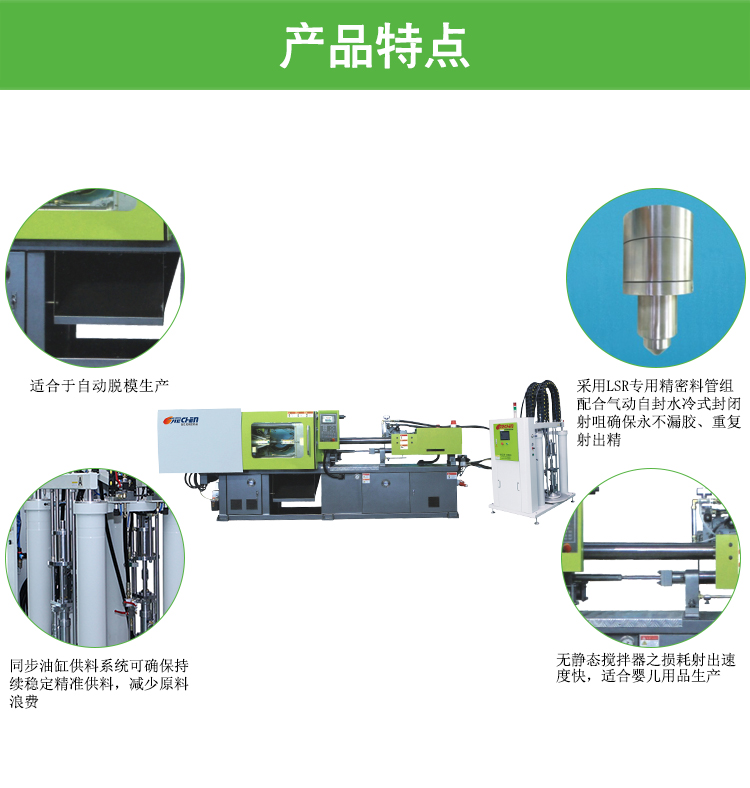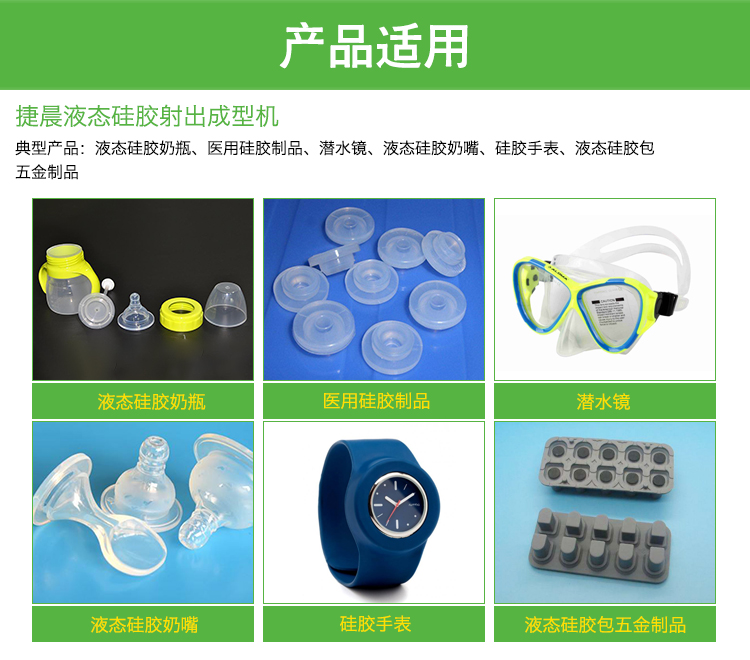 本公司生產(chǎn)的液態(tài)硅膠射出機(jī)廣泛用于醫(yī)療、成人、嬰童用品、汽車配件、電子配件、文具、體育、潛水用具等產(chǎn)品,并研發(fā)出微量精密液態(tài)硅橡膠射出機(jī),液體硅膠(固轉(zhuǎn)液)智能供料機(jī),全方位滿足不同客戶的各種需求。
